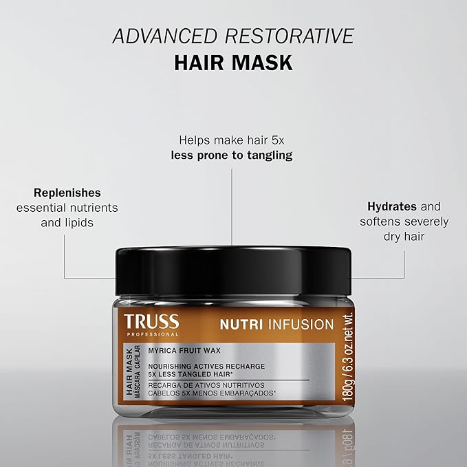 Nutri Infusion Hair Mask offers advanced nutri-lipidic care, restoring critical nutrients to the hair fiber. It smooths, hydrates, and reduces tangling by 5x, leaving hair healthier and easier to manage after just one use.
